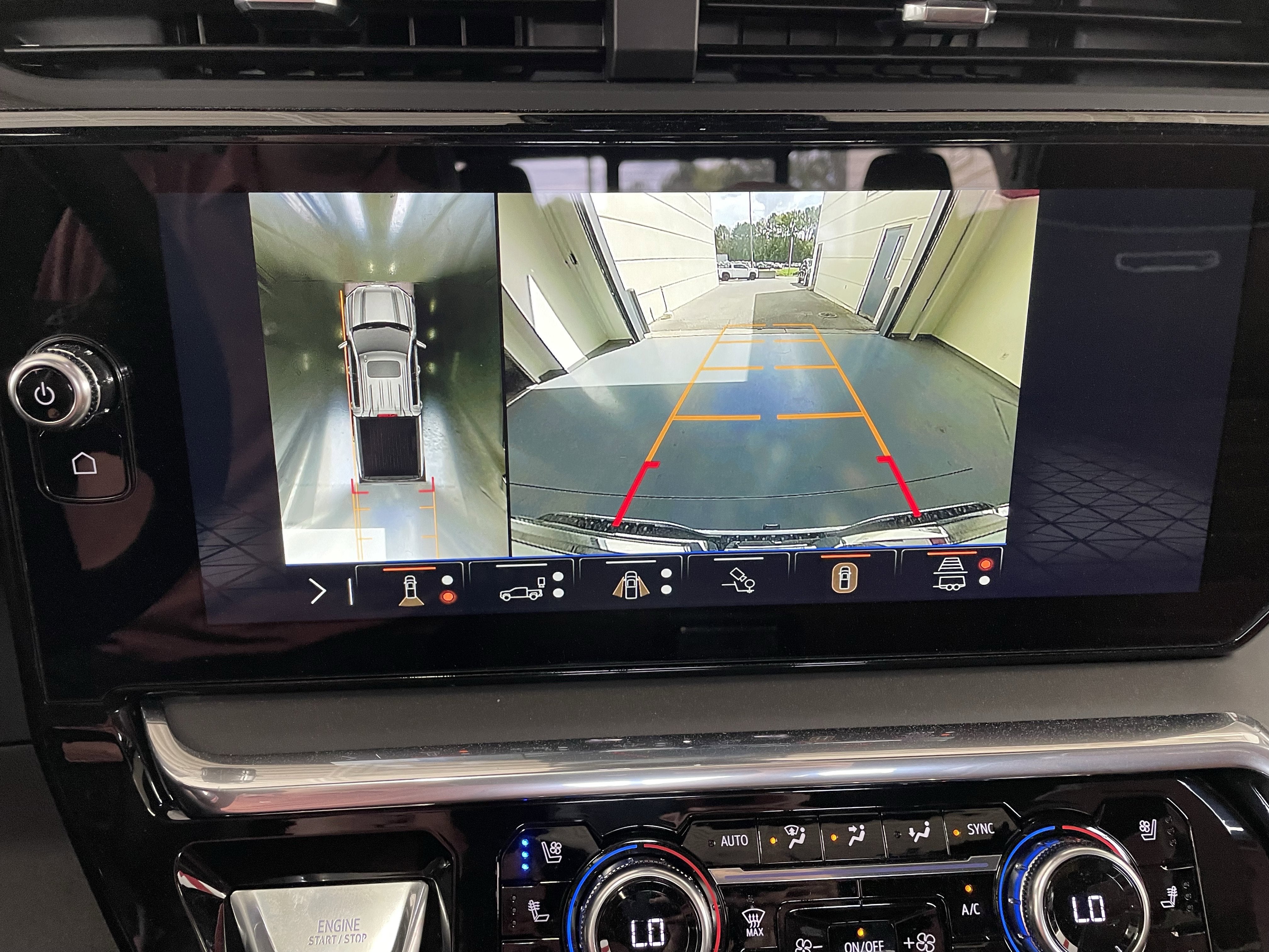 - Allows driver to see inside the cargo bed on the infotainment display to help with 5th wheel or gooseneck hitching and to check cargo